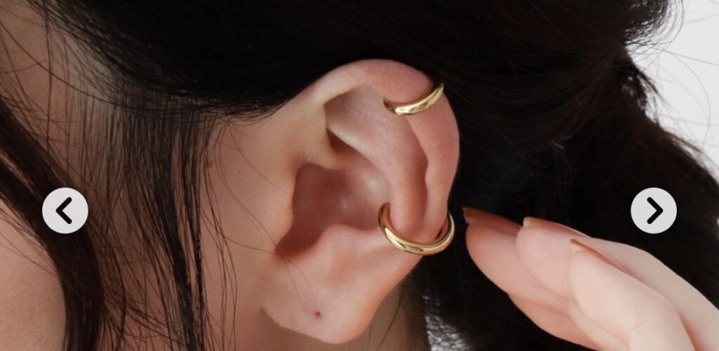 ピアスはキャラから見て左でお願いします! 形はこういったフープタイプでこれより少し太めでカラーはおまかせでお願いします。