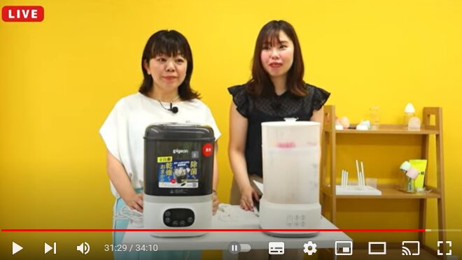 下記のアカチャンホンポ公式Youtubeでポチットと比較をしているシーンがありますが、確かにスチームメイトの方がスリムな形ですが、そこまで大きな違いはないように見えますね。